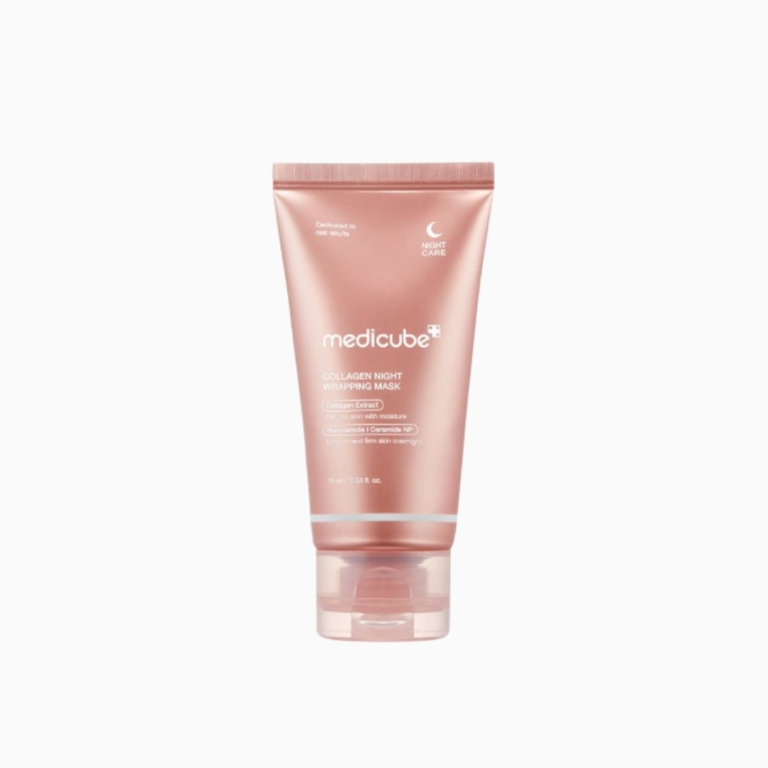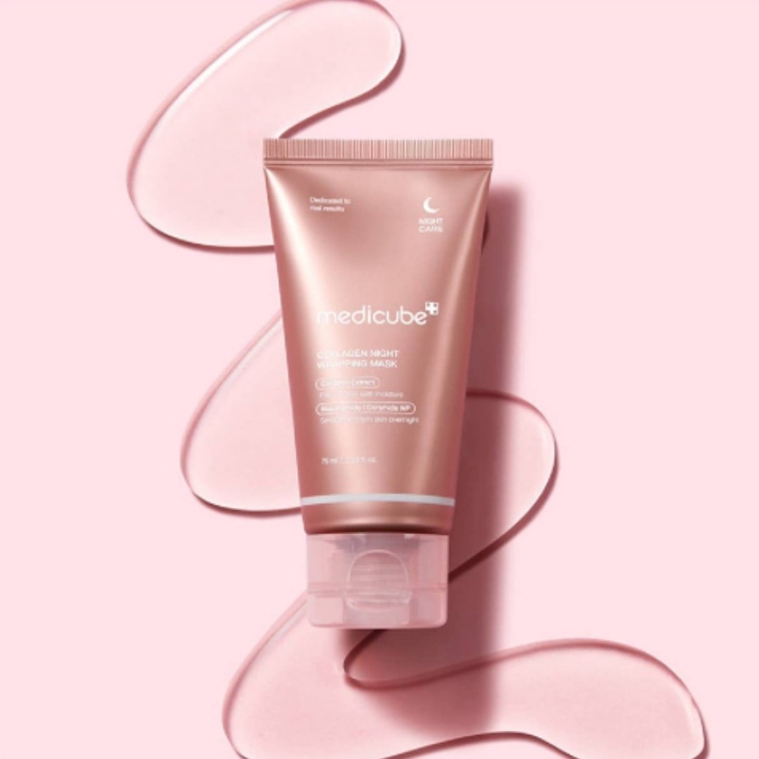 La Collagen Night Wrapping Mask de medicube es un tratamiento nocturno diseñado para actuar mientras duermes, creando una capa protectora que ayuda a retener la humedad y potenciar la reparación de la piel. Formulada con colágeno y agentes hidratantes, mejora la elasticidad, suaviza la textura y aporta un aspecto más firme y descansado al despertar.