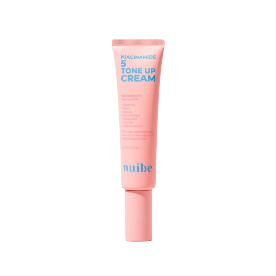 Nuibe Niacinamide 5 Tone Up Cream es una crema ligera diseñada para hidratar y brindar un efecto de piel más uniforme y luminosa desde la primera aplicación. Su fórmula contiene 5% de niacinamida, ingrediente clave que ayuda a disminuir la apariencia de manchas, rojeces e imperfecciones, promoviendo un tono más equilibrado y saludable.